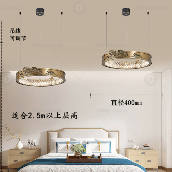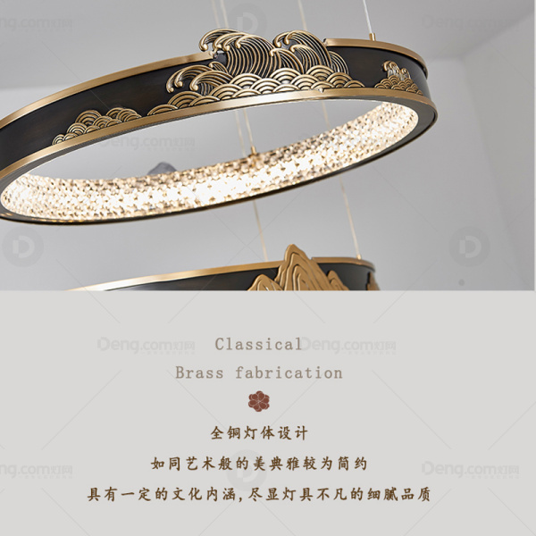 铜泽铜餐厅雕刻新中式吊灯 头数:2头 型号:E9901-2L