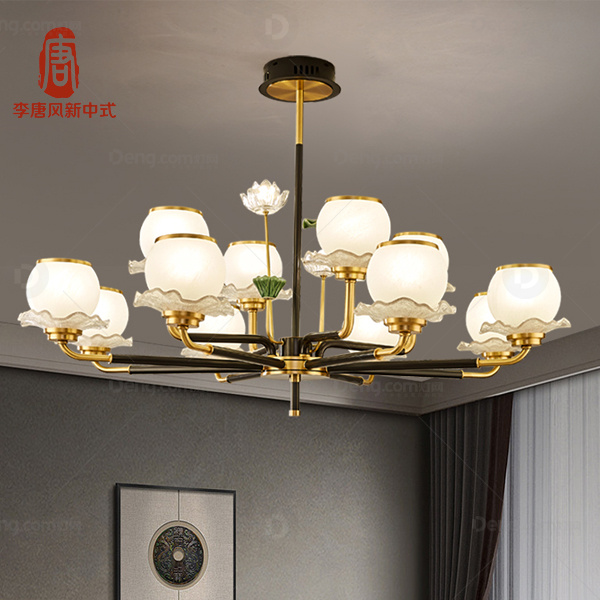 李唐风铜客厅染色新中式吊灯 头数:12头 型号:D22007-8+4B