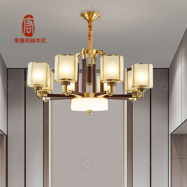 2022新中式黄铜红木客厅卧室书房吊灯
