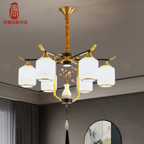 李唐风玻璃书房/卧室染色新中式吊灯 头数:6头 型号:D22002-6B