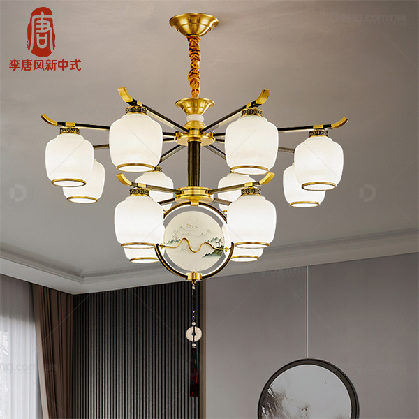李唐风铜客厅染色新中式吊灯 头数:12头 型号:D22006-8+4吊
