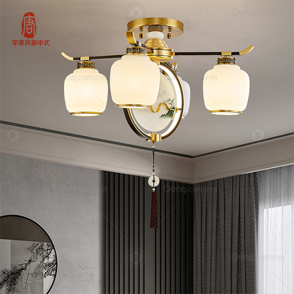 李唐风铜书房/卧室染色新中式吸顶灯 型号:D22006-4吸
