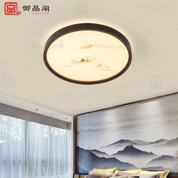 御品阁木艺书房/卧室镂空雕花中式吸顶灯 型号:8418-D410三色光