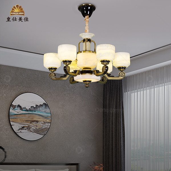 锌合金玉石新中式客厅吊灯餐厅灯简约现代大气中国风复式别墅灯具