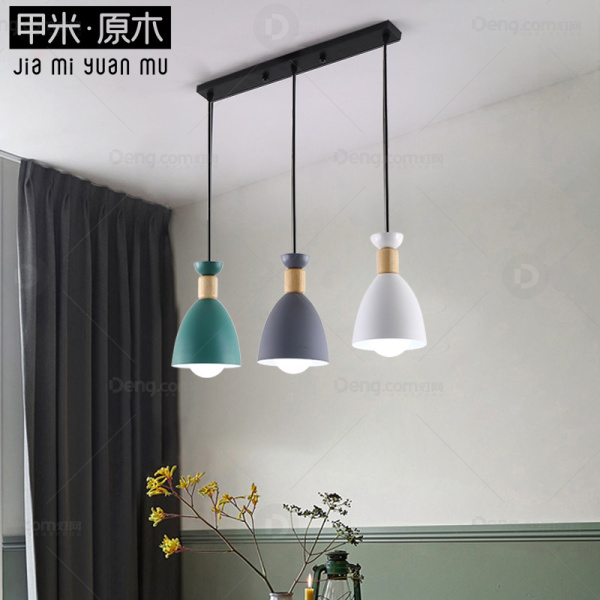甲米·原木铁艺餐厅喷漆磨砂北欧/宜家吊灯 头数:3头 型号:6801-3黑色长盘