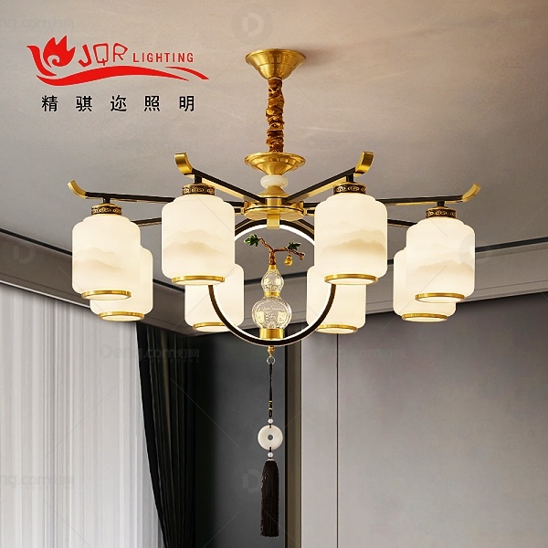 精骐迩铜书房/卧室染色新中式吊灯 头数:8头 型号:JQR8925-8头/全铜