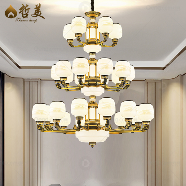 哲美锌合金别墅/酒店大堂喷漆磨砂新中式吊灯 头数:24头以上 型号:622-30头3层