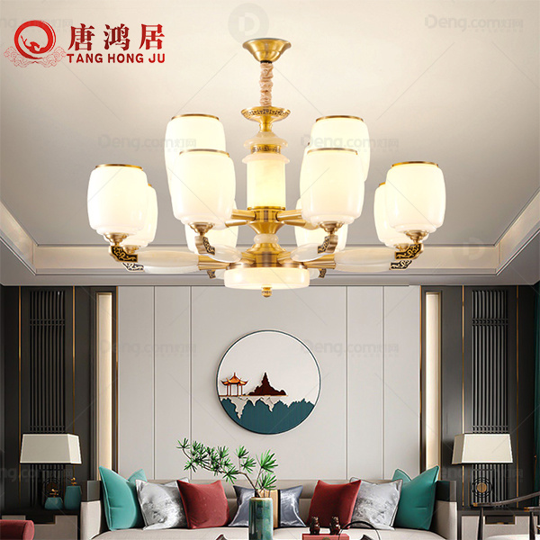 唐鸿居实木客厅喷漆磨砂新中式吊灯 头数:12头 型号:7915/8+4头