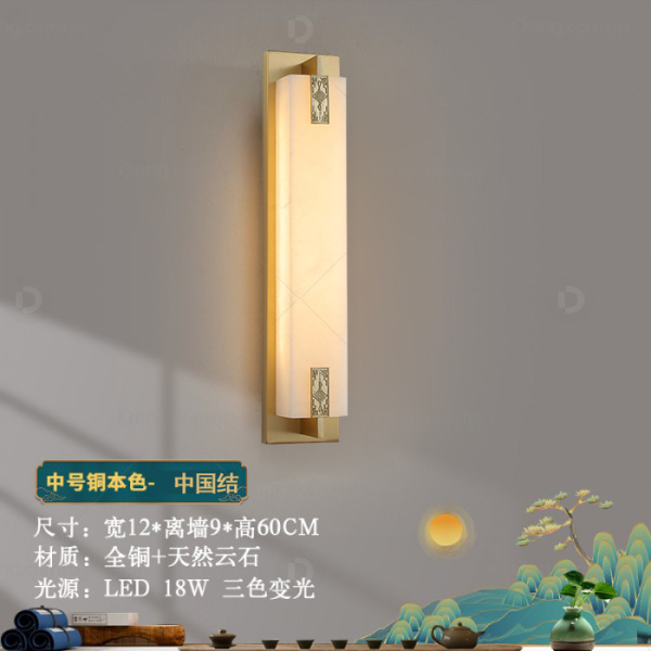 美奇特铜客厅染色新中式壁灯 头数:单头 型号:MQT6010-600长中国结-云石(铜本色)