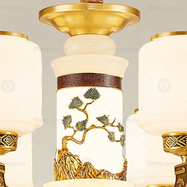 新中式 吊灯 铜 珐琅彩玉石发光中柱 防尘罩