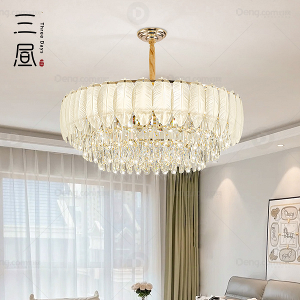 轻奢 吊灯 水晶 羽毛玻璃灯罩
