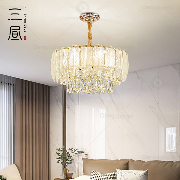 轻奢 吊灯 水晶 羽毛玻璃灯罩
