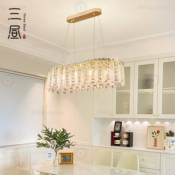 三昼水晶餐厅电动冲孔轻奢吊灯 头数:10头 型号:KMD8102-直径800椭圆餐吊