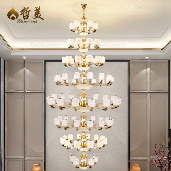 哲美铜别墅/酒店大堂染色新中式吊灯 头数:24头以上 型号:YX-RCDF-100头