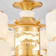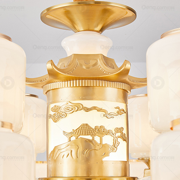 新中式 吊灯 铜+玉石灯臂 古典发光中柱 防尘罩