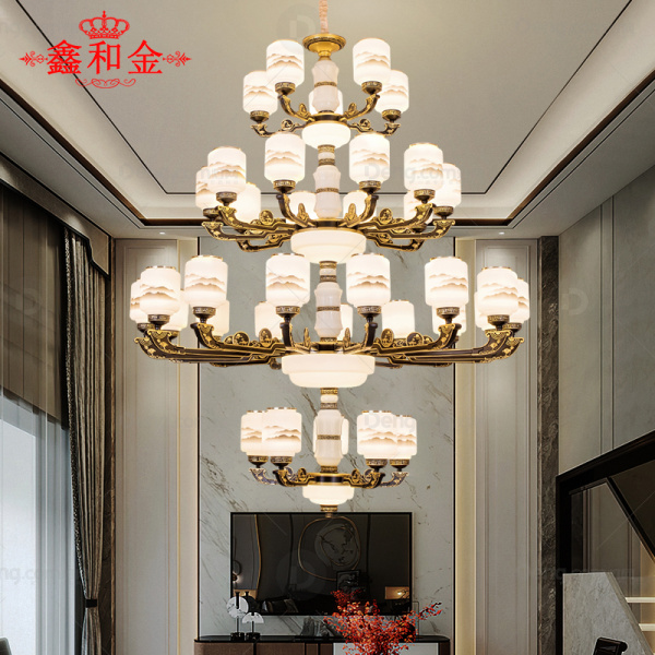 鑫和金锌合金别墅/酒店大堂喷漆磨砂新中式吊灯 头数:24头以上 型号:33301-5+15+10+5