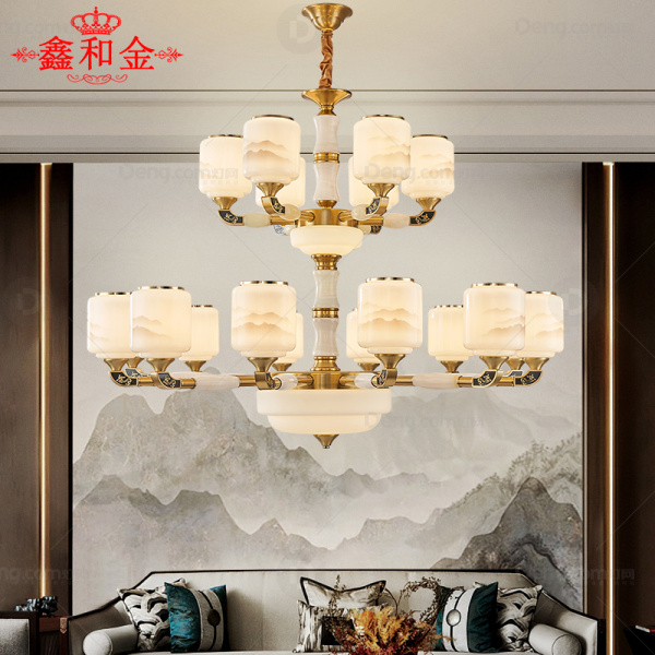 鑫和金玉石高层/复式电镀新中式吊灯 头数:18头 型号:33515-18真两层