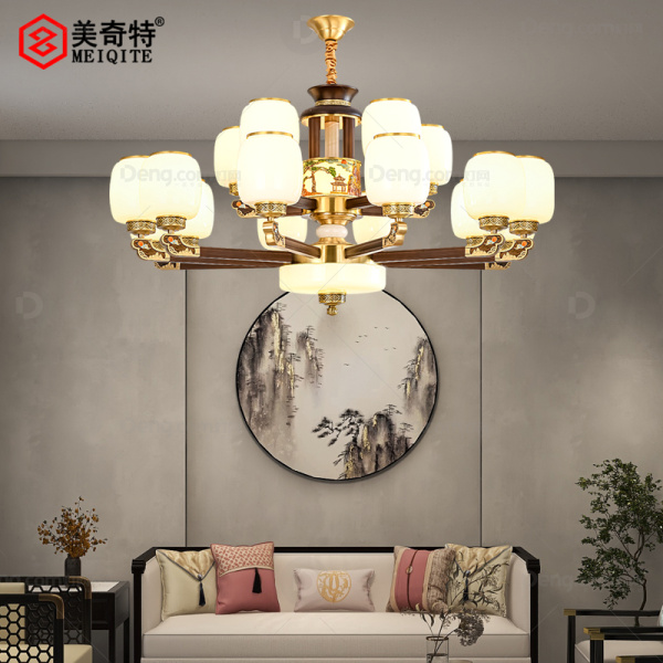 美奇特铜客厅锻打新中式吊灯 头数:18头 型号:MQT9869-18头