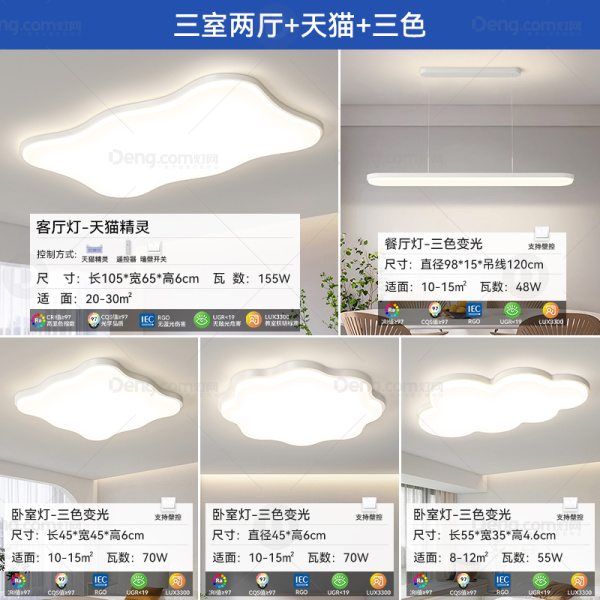久觅铁艺客厅喷漆磨砂现代简约吸顶灯 型号:8982套餐/沙白/三室两厅/天猫+三色