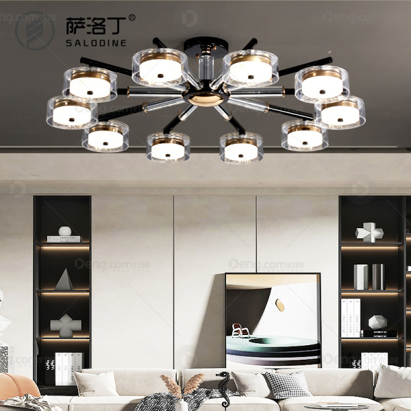 萨洛丁铁艺客厅喷漆磨砂北欧/宜家吸顶灯 型号:LD1632-10头/黑色