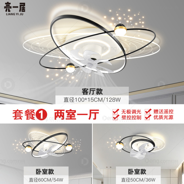 亮一居铁艺客厅现代简约套餐 型号:9057-A款.风扇灯二室一厅