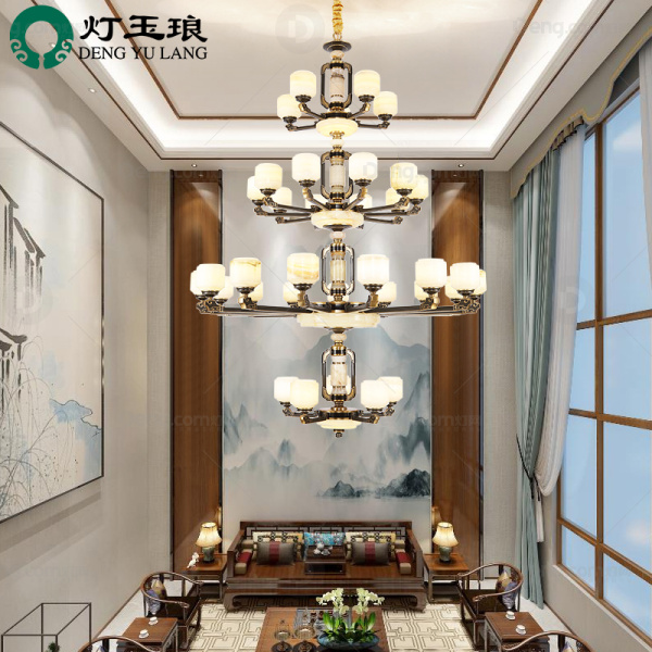 灯玉琅锌合金别墅/酒店大堂染色新中式吊灯 头数:24头以上 型号:AHX68150-5+15+10+5