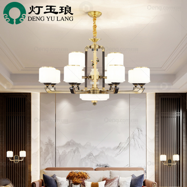 灯玉琅锌合金客厅染色新中式吊灯 头数:12头 型号:AHX68155-8+4