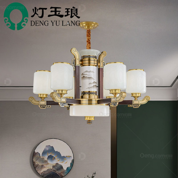 灯玉琅锌合金书房/卧室染色新中式吊灯 头数:6头 型号:AHX68166-6