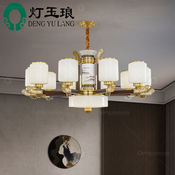 灯玉琅锌合金客厅染色新中式吊灯 头数:10头 型号:AHX68166-10