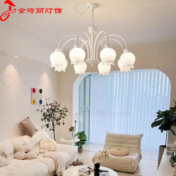 金琦丽玻璃客厅电动冲孔奶油风吊灯 头数:8头 型号:20732-8
