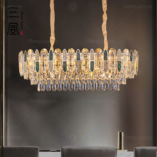 三昼水晶餐厅电动冲孔轻奢吊灯 头数:10头 型号:KMD8136-800*350*260椭圆