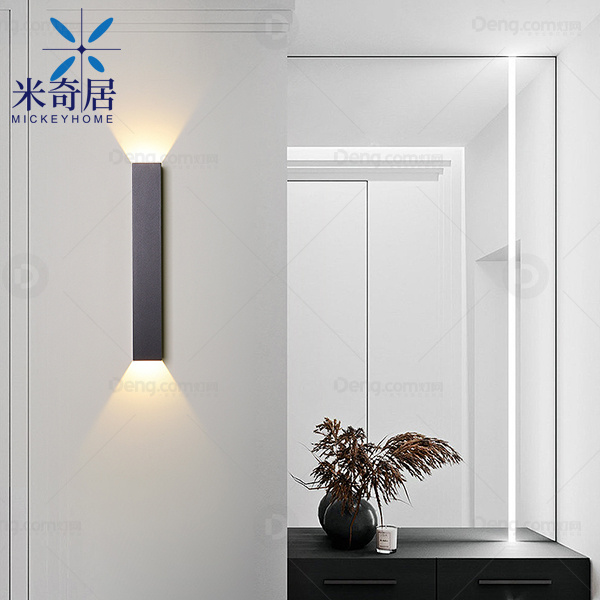 米奇居铝材客厅喷漆磨砂现代简约壁灯 头数:单头 型号:BD6063-方形350-沙黑-暖光