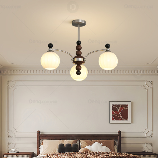 中古风吊灯,灯体:铁艺+复古实木中柱,纹理清晰,不易开裂变形,防腐防锈。 灯罩:玻璃灯罩,创新雪花纹灯罩,透光均匀不刺眼。