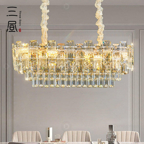 三昼水晶餐厅电动冲孔轻奢吊灯 头数:8头 型号:LQ2272-800*350*260椭圆