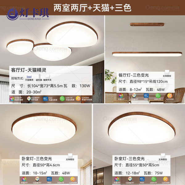 灯卡琪铁艺客厅喷漆磨砂中古风吸顶灯 型号:930套餐/两室两厅/胡桃木色/天猫+三色