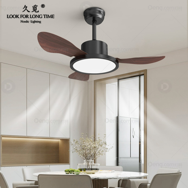 久觅铁艺书房/卧室喷漆磨砂现代简约风扇灯 头数:1头 型号:8832A/3-36寸/黑+胡桃木/遥控