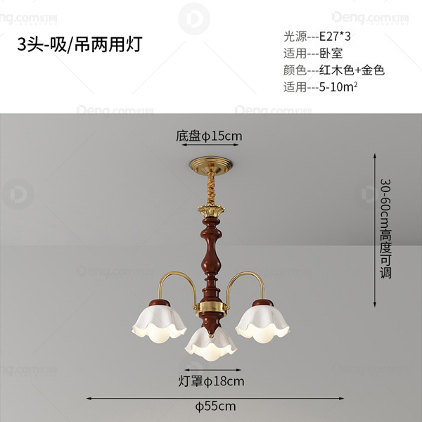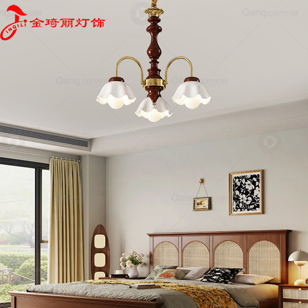 金琦丽实木书房/卧室电镀中古风吊灯 头数:3头 型号:20789-3