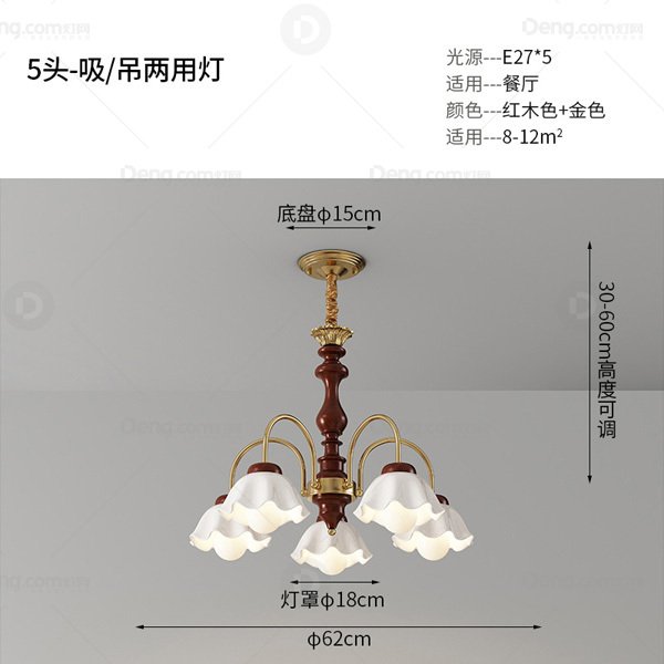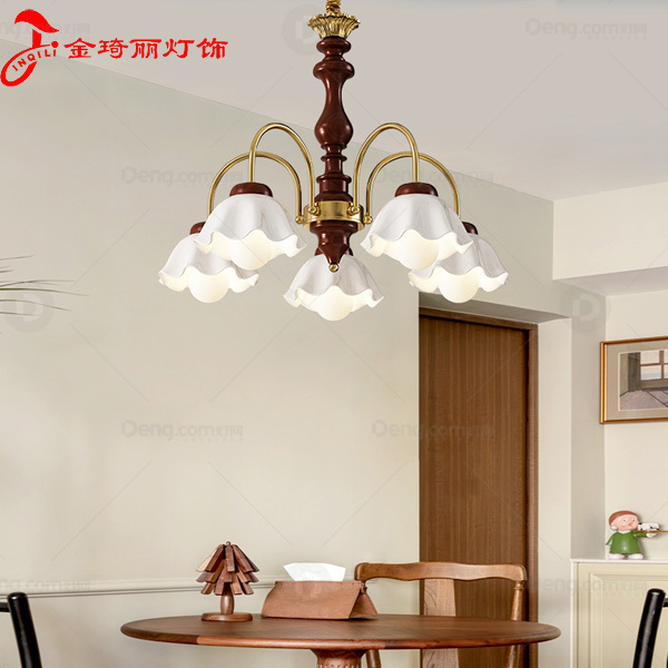 金琦丽实木餐厅电镀中古风吊灯 头数:5头 型号:20789-5