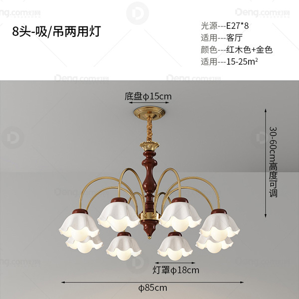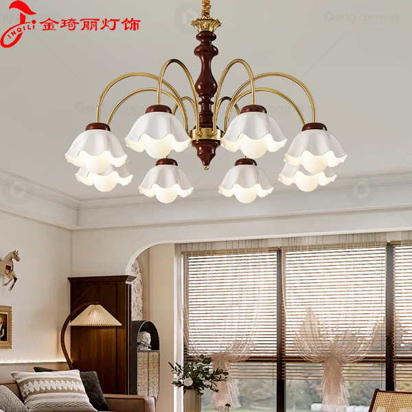 金琦丽实木客厅电镀中古风吊灯 头数:8头 型号:20789-8