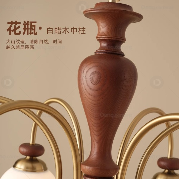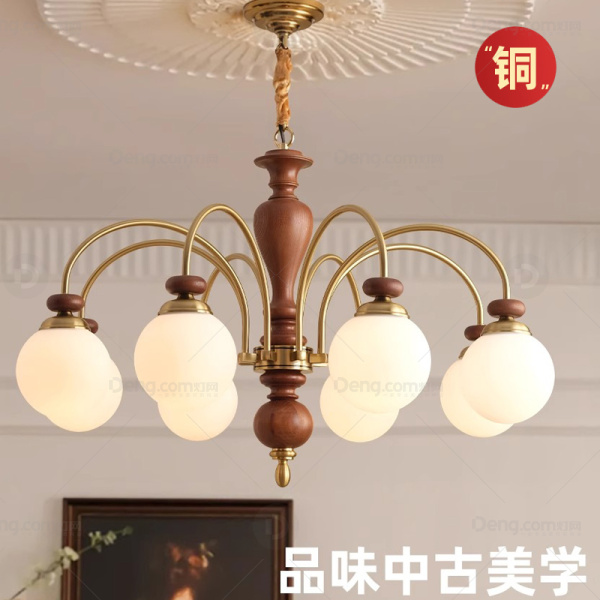 中古风吊灯,灯体:全铜+橡木,简约不单调,经久耐用。灯罩:奶白色玻璃灯罩,手感光滑细腻耐高温,柔和不刺眼。