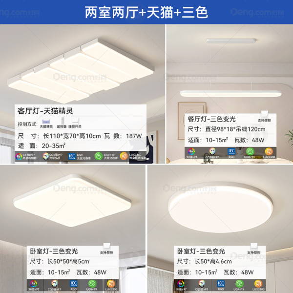 久觅铁艺客厅喷漆磨砂现代简约吸顶灯 型号:8257套餐/白色/两室两厅/天猫+三色