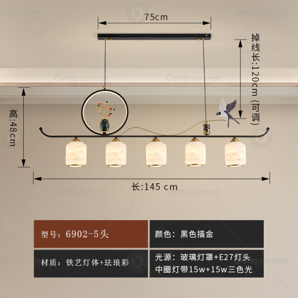 美奇特铁艺餐厅喷漆磨砂新中式吊灯 头数:5头 型号:型号:MQT6902-5头