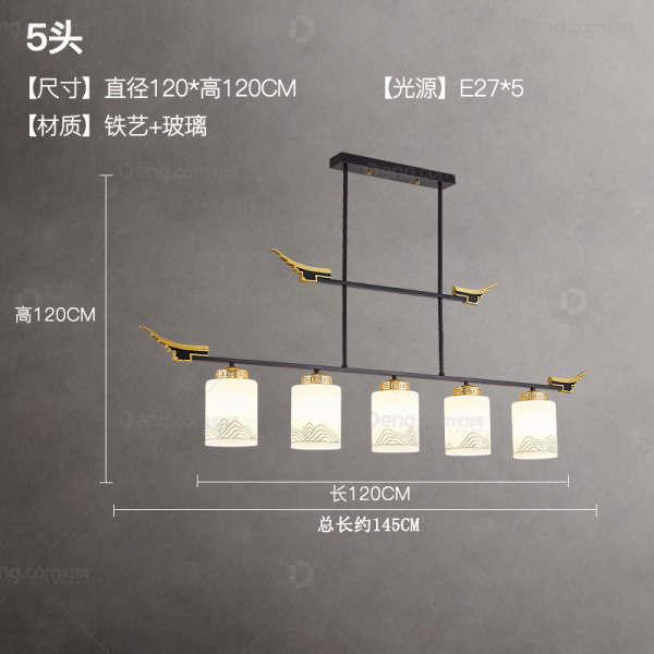美奇特铁艺书房/卧室喷漆磨砂新中式吊灯 头数:5头 型号:MQT1701-5头