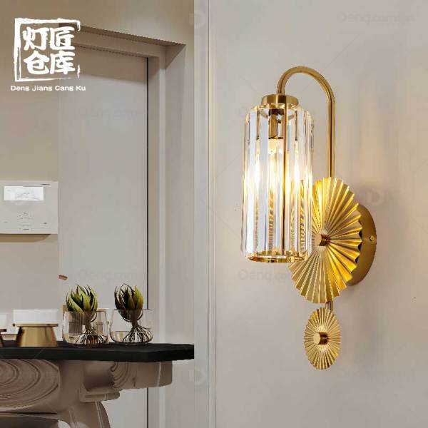法式古典水晶壁灯 美式乡村铁艺轻奢卧室客厅过道床头水晶壁灯具