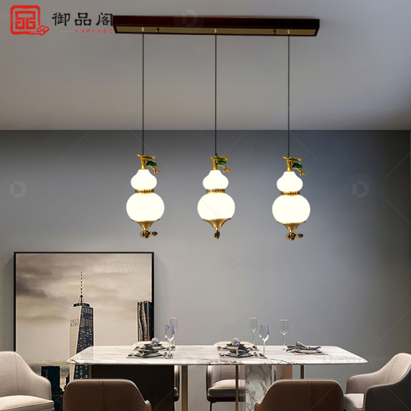 御品阁实木餐厅镂空雕花新中式吊灯 头数:3头 型号:PG96571/3头长盘