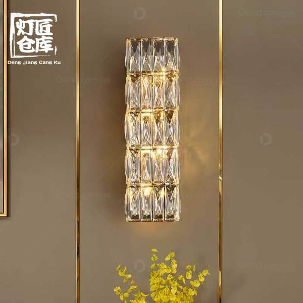 高档轻奢水晶别墅复式楼大厅长壁灯客厅背景墙酒店工程宴会包厢灯