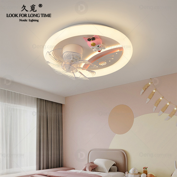 久觅铁艺儿童房喷漆磨砂现代简约风扇灯 头数:1头 型号:Y9424A款/白+粉/离线语音