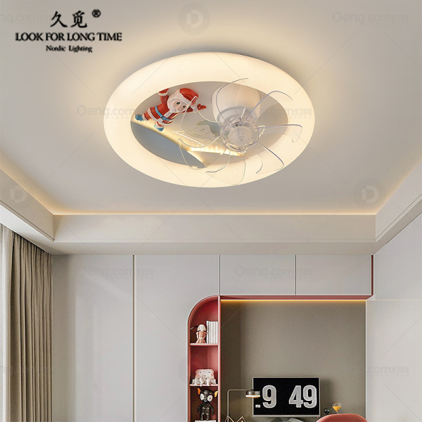 久觅铁艺儿童房喷漆磨砂现代简约风扇灯 头数:1头 型号:Y9424D款/白+蓝+红/离线语音