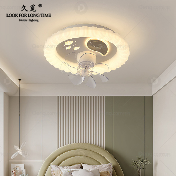 久觅铁艺书房/卧室喷漆磨砂现代简约风扇灯 头数:1头 型号:Y9427C款/白+灰/离线语音