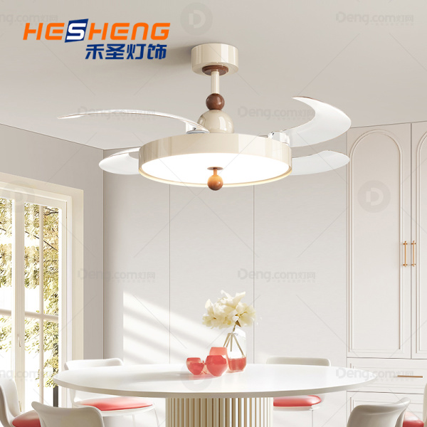 禾圣铁艺餐厅其他/other现代简约风扇灯 头数:1头 型号:F5390031/吊扇款-奶油色+胡桃木色